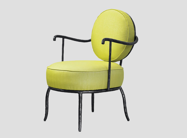 Fauteuil Elizabeth Garouste avec une structure en fer battu, assise et dossier tapissés. Édition limitée à 30 exemplaires numérotés + 4 épreuves d’artiste.