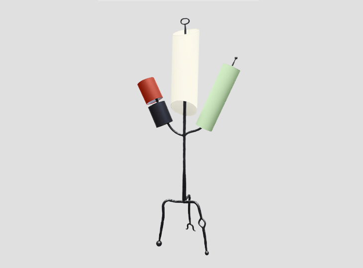 Lampadaire Elizabeth Garouste, en fer sculpté patiné noir, abat jours. Édition limitée à 30 exemplaires numérotés + 4 épreuves d’artiste.
