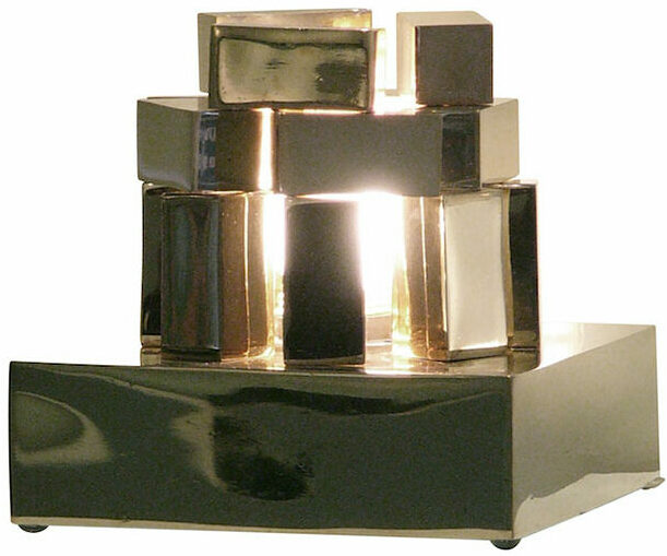 Lampe constituée de 16 éléments mobiles en bronze poli or, socle en bronze poli or. Édition limitée à 100 exemplaires numérotés + 4 épreuves d’artiste. Pièce créée pour l’exposition « Huit Designers face au Bronze », en 2001.
