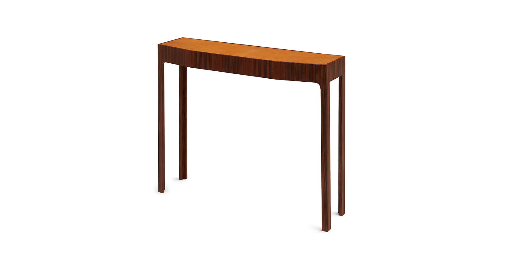 Console en palissandre de Santos, plateau en cuir. Édition limitée à 30 exemplaires numérotés.Création pour l’exposition personnelle d’Eric Jourdan « Fauve » . Eric Jourdan a reçu le Grand Prix du Design Artparis.