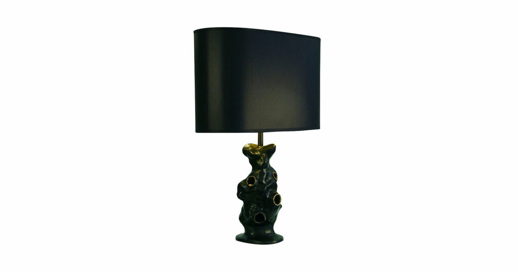 Lamp in black and gold patinated cast bronze, shade. Limited edition of 30 numbered examples + 4 artist’s proofs.Created for the exhibition “Fragmentation“, Realized from an original sculpture of  Elizabeth Garouste.